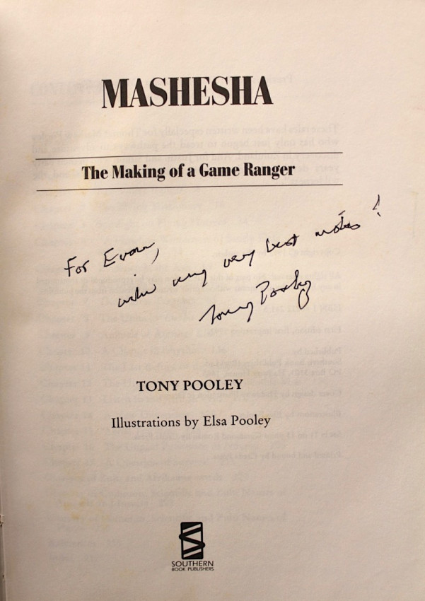 'MASHESHA! he who hurries and takes, the name given to the author Tony Pooley for his relentless pursuit of poachers, worked for the Natal Parks Board in the Maputaland area for 25 years. Mashesha, The Making of a Game Ranger is an anecdotal and often humorous account of those years, when the Parks Board was in its infancy and organized conservation barely a dream.