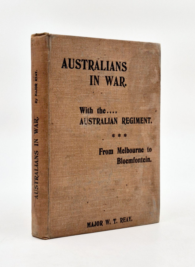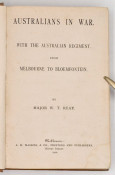 Hackett (R.G.) South African War Books: an illustrated bibliography page 118: A record of the First Australian Regiment in South Africa from November 1899 to April 1900. The force, comprised of Victorian, South Australia, West Australian and Tasmanian contingents, was employed in the Kimberley relief operations and later served in cape Colony. In December 1899 the regiment was stationed on the de Aar- Modder River line. Units occupied posts at Belmont and Enslin. In January 1900 they were brought down to Naauwpoort in the Cape Colony and all units converted to mounted infantry. The following month the regiment was attached to gen Clements' force engaged in operations in the Colesberg area. In the heavy fighting during February and March the Australians sustained significant casualties. As the northern Cape Colony was cleared of Boers British columns advanced into the Orange Free State. The Australians formed part of the force that reached Bloemfontein on April 4. The narrative ends with the reorganisation of the regiment in April 1900. Appendices include a list of Victorian casualties up to September 1900.