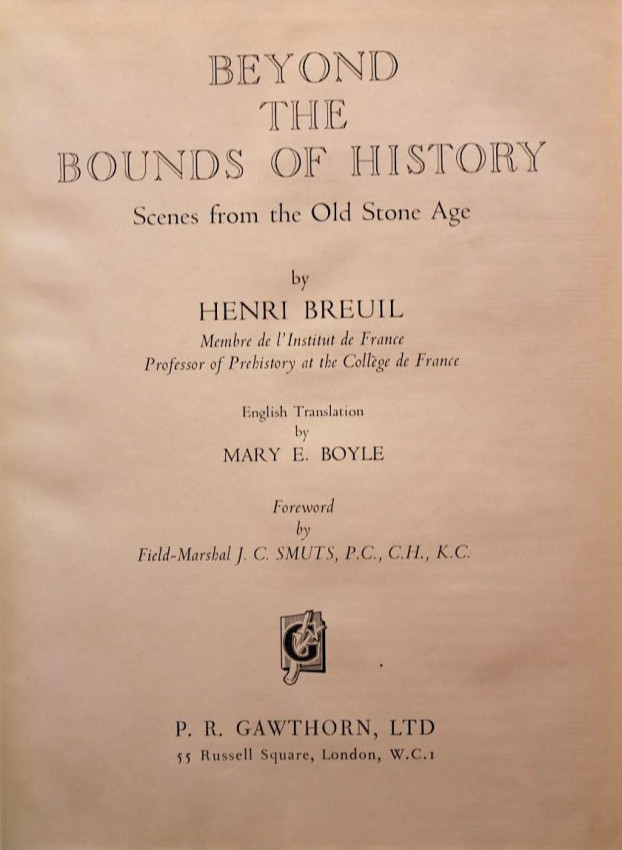 BEYOND THE BOUNDS OF HISTORY - Scenes from the Old Stone Age (1949) - foreword by General Jan Smuts