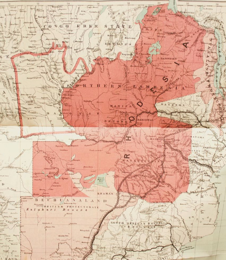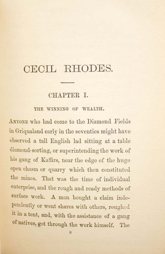 vi + 413pp + two portrait plates of Mr. Rhodes (retaining original tissue guards) and a large fold-out map of South Africa at rear.