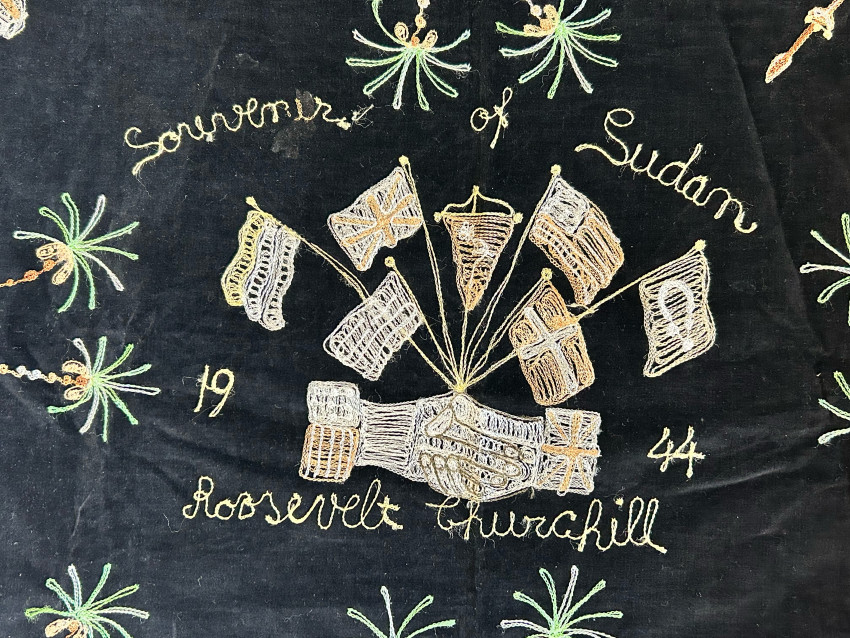 The inscription reads 'Souvenir of Sudan - 1944 - Roosevelt Churchill.'
