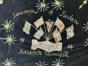 Provenance reads in part, '...I was serving in the Royal Air Force as Air Crew of the North African Campaign and was transferred to Khartoum-Sudan waiting to go home to England after serving from 1940-1944...The Wing Commander was presented with 10 of these Table-Cloths from The Sudanese Government to give to the most worthy personnel of the Unit. I was chosen as one of the personnel with my record of The Desert Campaign North Africa...'