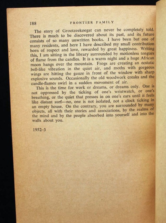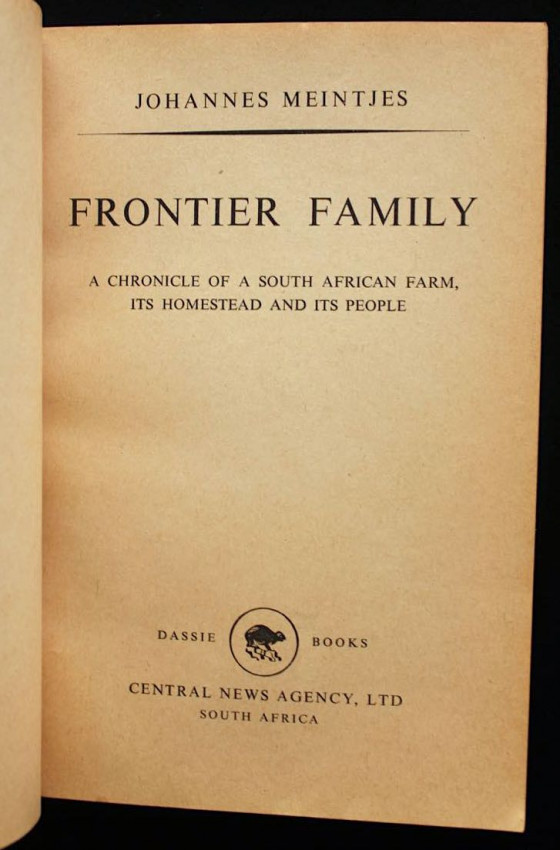 "FRONTIER FAMILY - A Chronicle of a South African Farm, Its Homestead and its People."