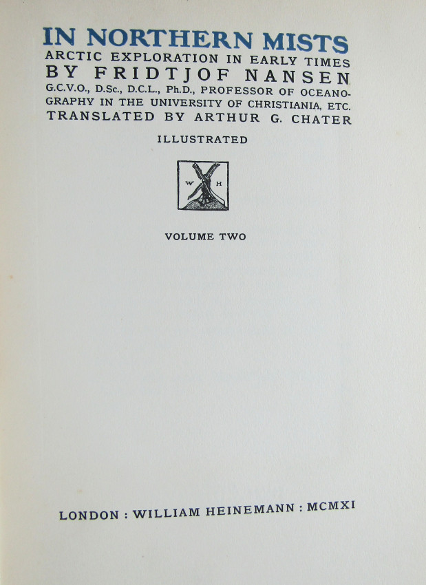 Publishers blue cloth black title and gilt vignette.
