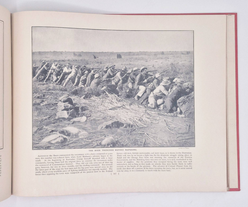First Issue, six parts (all that were published) with the original brown paper wrappers (front and back) bound in, 140 + 2 pages index, illustrated throughout with full page photographs and illustrations by war artists (Melton Prior, Sidney Paget, J. Finnemore and others) with detailed captions beneath, red buckram cloth, fine.