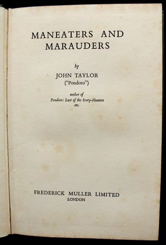 Those who have not lived amongst the natives of Eastern and Central Africa can have no conception of how numerous man-eating lions are in some areas; nor of the reign of terror they can create. The author describes how he shot and killed eleven lions in one district alone within the space of a few weeks. And that was only one of the "bad" districts known to him. He tells of many others in this hair-raisingly exciting book, which is full of the jungle lore and real-life adventure that thrilled the thousands of readers of John Taylor's first book, Pondoro: Last of the Ivory Hunters.' - editor's note