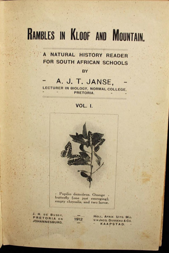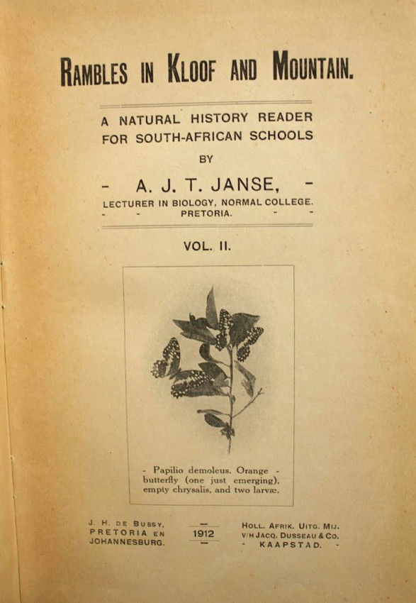The author, Dr. Anthonie Johannes Theodorus Janse (1877-1970) was a pioneer of South African entomology (insects), who specialised in Lepidoptera (moths and butterflies). He is credited for the discovery of over 500 new species of moths and butterflies and his eight volume work The Moths of South Africa (1932-1964) is the definitive work on the subject.