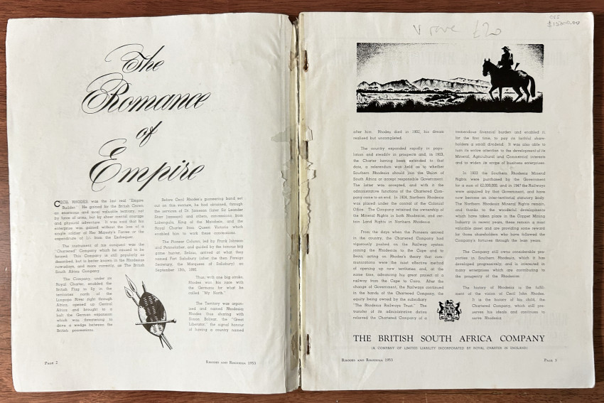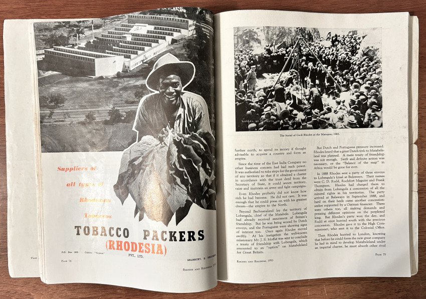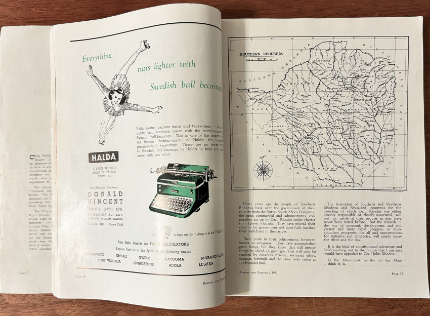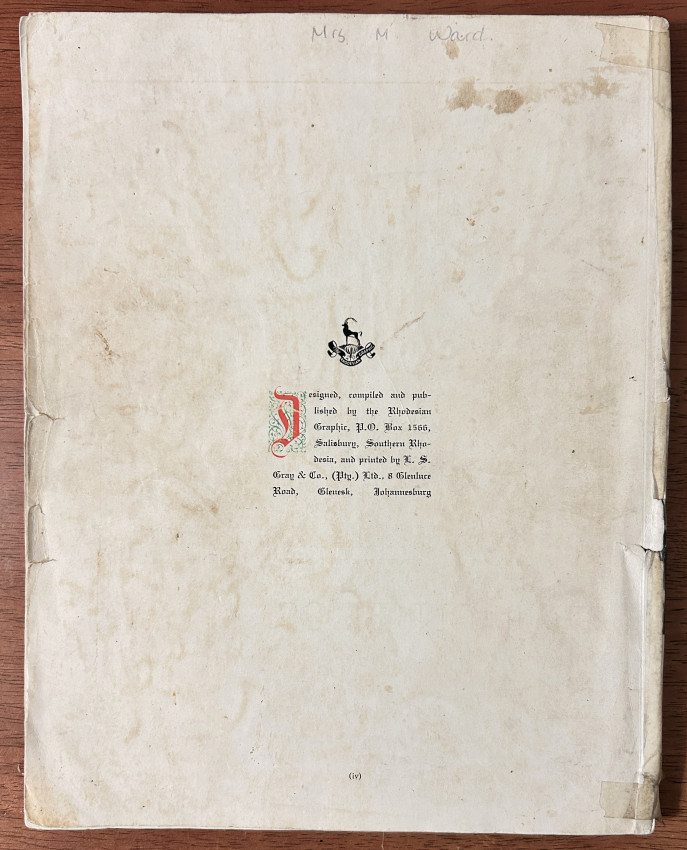 162 pages. Paperback, 1st Edition. Printed on glossy paper. Numerous advertisements, photos and illustrations with descriptive and narrative text. Printed to commemorate the Rhodes Centenary 1933. Cover has signs of wear, tear and staining (see photos). The contents remain clean with binding (staples) tight. Overall very good condition.