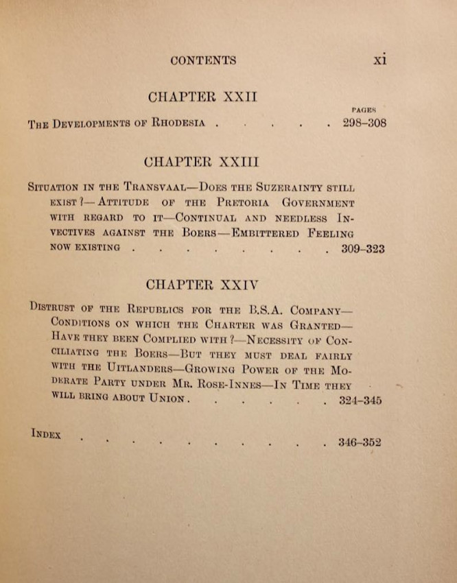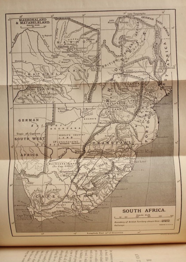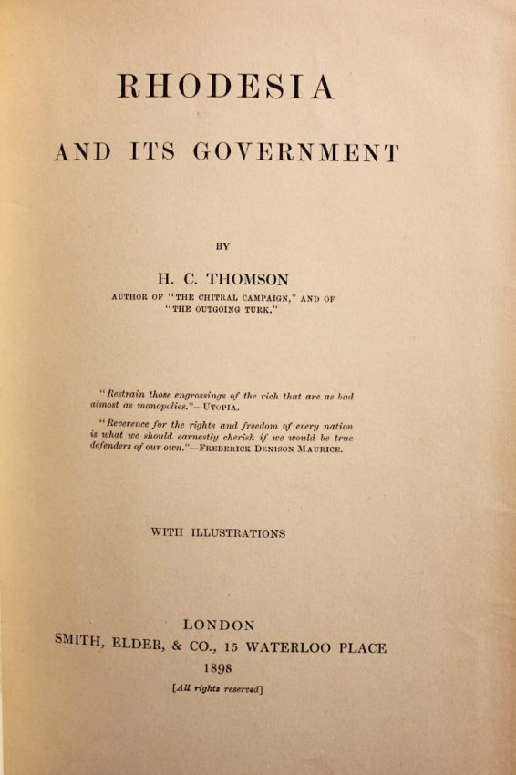 'Mr. Thomson is a severe critic of the Chartered Company, which he says "as a government, has no claim to indulgence." He maintains that "it has given cause for suspicion to the Boers, to the Portuguese, and to the neighbouring native states, and it has cruelly wronged and oppressed those natives who have been placed under its control. . . . For these things Mr. Rhodes is directly responsible." He considers that the causes of the rebellion in Matabeleland and Mashonaland were the maladministration of affairs in the country, the appointment of native police, the irritation caused by the shooting of the natives' cattle owing to rinderpest regulations, and to the reality of forced labour imposed upon the native races. It is asserted that the natives said, "Our country is gone, our cattle have gone, our people have scattered, we have nothing to live for . . . we are the slaves of the white man, we are nobody, and have no rights or laws of any kind. . . Could there be," asks the author, "a sadder commentary upon the results of our occupation of Matabeleland?" Nevertheless, it is maintained that "the failure of the Company to govern rightly has not been wilful, but has arisen from weakness of administration and extent of territory." Although acquitting Mr. Rhodes of sordid motives, and descanting on his liberality to the settlers and the natives, the author practically accuses him of having forced on the war with Lobengula under the pretence of protecting the Mashonas. He remarks on the great personality of the South African statesman, which, he states, exercised an influence over both the Dutch in the Colony and the Republics. He quotes a conversation between Mr. Merriman and himself, in the course of which he remarked, that Mr. Rhodes ought to have been detained in England and tried at the same time as Dr. Jameson; in reply, it appears, Mr. Merriman flared up at once, "I don't agree with you at all," he said, "I am a strong enough opponent of Mr. Rhodes, but if we choose to elect the Devil himself, we are not going to have you (the English Government) say we shall not."' - Mendelssohn Vol.II, pages 495-96