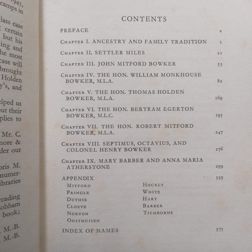‘The Bowkers of South Africa arrived in South Africa on 15 May 1820, aboard the Weymouth, after a four-month voyage. They were no ordinary English family—Miles and Anna Maria hailed from the ancient Bourchier and Mitford families, owners of large northern English estates, many of which still stand and are open to the public via England’s National Trust. Leaving behind privilege and comfort, the Bowkers embarked on a daunting journey into the unknown. Yet they went on to contribute significantly to South Africa in many fields.