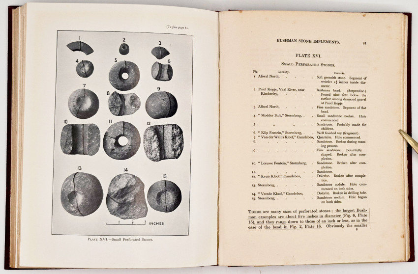 'In I887 I traversed Bushmanland for the Cape Government. In these days of motor cars it is scarcely possible for anyone to realise the remoteness of Bushmanland at that period, or the slowness of travelling by ox wagon. This expedition occupied nearly four months. During the trip I saw the last remnant of the yellow, or pure Bushman people, who were living in their own country, and amid their natural surroundings; they were still using their primitive stone, wood and bone implements and their own pottery. Some of these Bushmen were quite wild, and so dangerous that I was provided with an escort of fifteen troopers of the Northern Border Police.' Author's preface.
