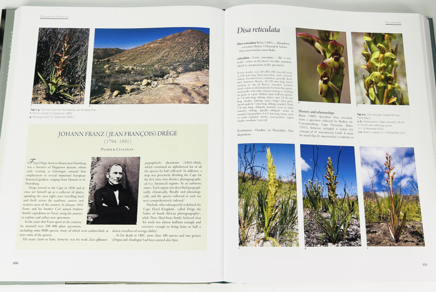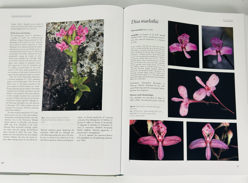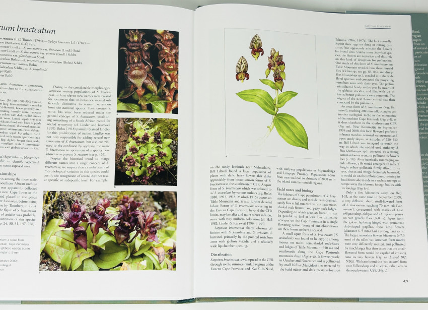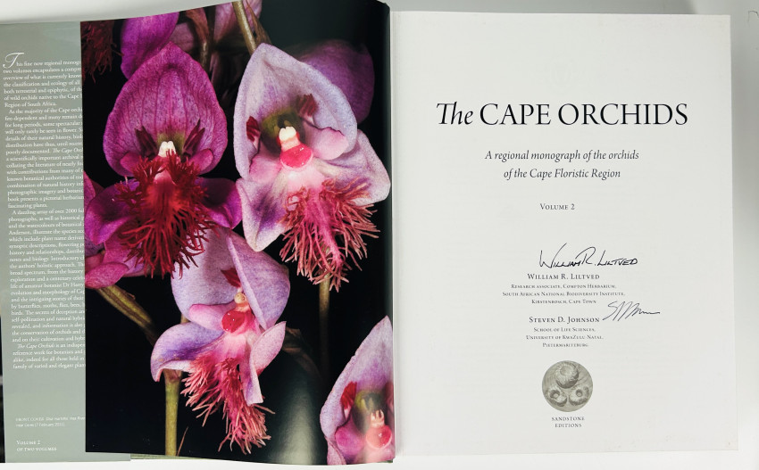 Over a century since the appearance of Dr Harry Bolus's magnificent account of the Orchids of the Cape Peninsula (Darter Bros & Co., Cape Town. First edition 1888; second edition 1918) and the first volumes of his seminal and beautifully illustrated series of three volumes on the Orchids of South Africa (William Wesley & Son, London. 1896, 1911, 1913), it is a pleasure to welcome a worthy successor. William Litved and Steven Johnson's long-awaited The Cape Orchids, a regional monograph in two volumes, was published at last in August, 2012. It is an authoritative and comprehensive overview of the 241 orchid species, both terrestrial and epiphytic, of the 24 genera native to the Cape Floristic Region of South Africa, one of the world's biodiversity hot-spots, a region that has been declared a World Heritage Site by UNESCO. It is a magnificent two-volume set which covers every aspect of the Cape orchid flora in a depth that I have not seen in other similar works anywhere.