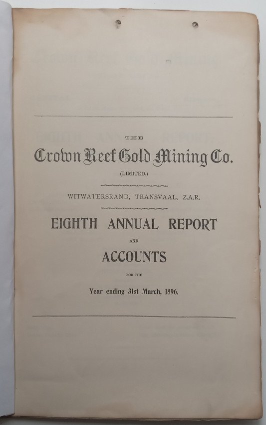 THE CROWN REEF GOLD MINING CO. EIGHTH ANNUAL REPORTS AND ACCOUNTS FOR THE YEAR ENDING 31ST MARCH, 1896