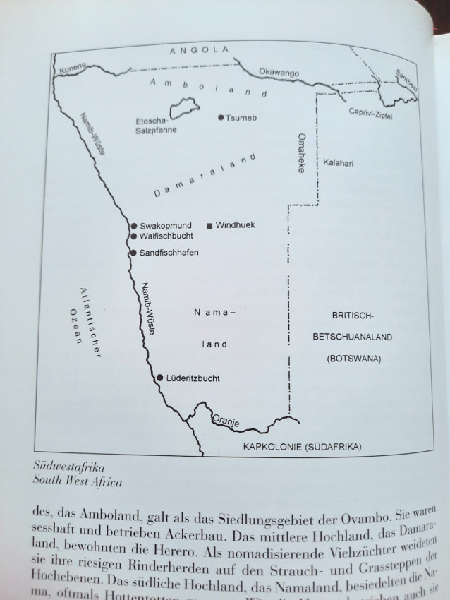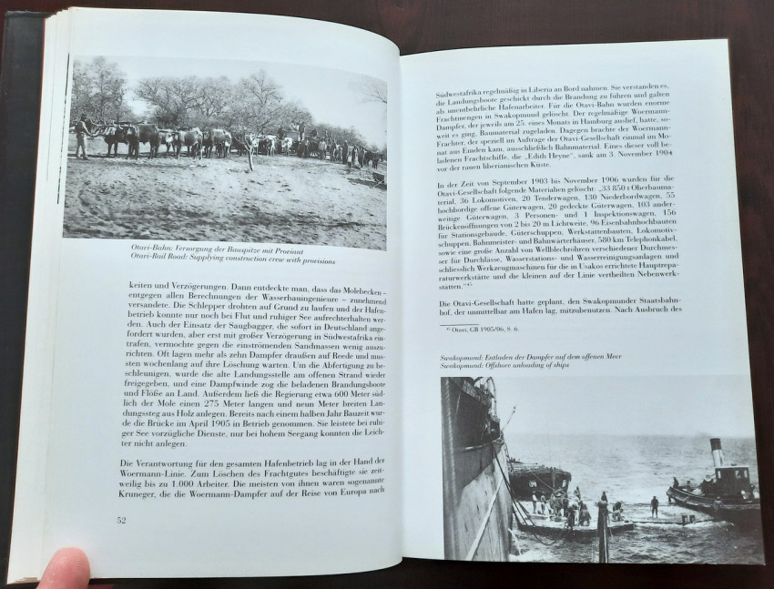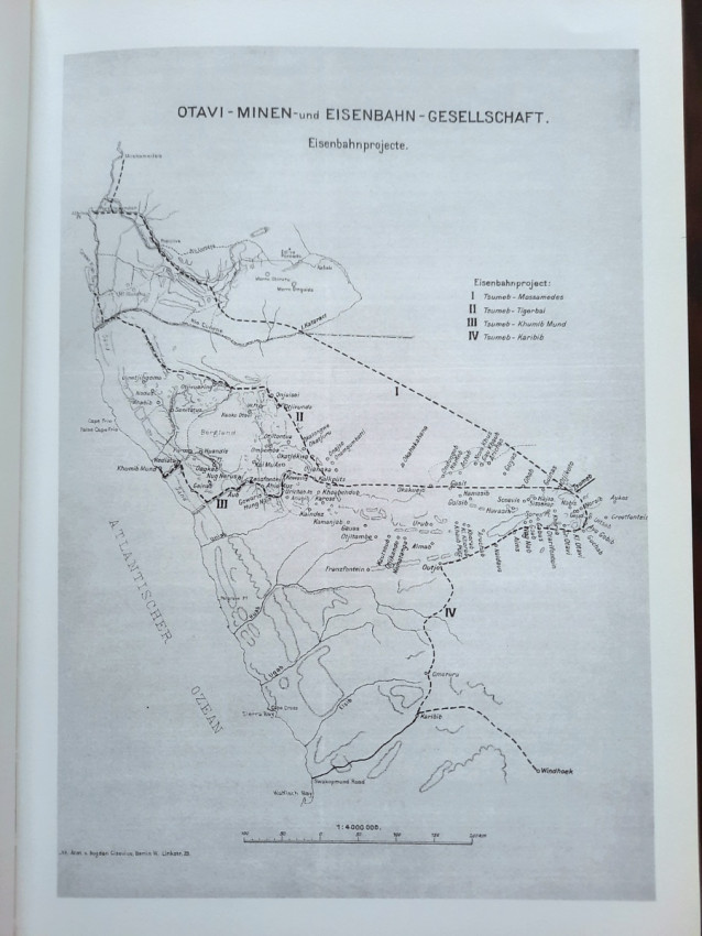 This scarce book printed in a small limited edition was based on an unpublished manuscript by Wilhelm Treue, "History of the Otavi Mining and Railway Company 1900-1975". With numerous photographic illustrations and maps; including the double-page coloured map "German South West Africa. Map of the Swakopmund-Tsumeb Railway, including the Swakopmund-Windhuk Government Railway" with inserted the "Map of the land area of the South West Africa Company, Ltd.", showing the land and mining rights of the Otavi Mining and Railway Company, and the "Map of the Tsumeb Mine".
