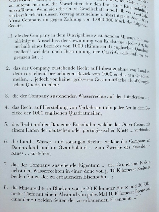 I. THE COLONIAL COMPANY (1900-1914) (with sections - Background: German South West Africa; Gold and Diamonds; Damaraland Concession. Founding history: Preliminary agreement; Legal form; Foundation of the Otavi Mining and Railway Company; The founders and their motives. The Otavi Railway: The Route, a political issue?; Deciding on the most economical solution; Preparations for the construction of the Otavi Railway; Herero War; Construction of the Otavi Railway; Operation of the Otavi Railway; Sale of the Otavi Railway. Copper Mining: Report on the Otavi Mines; Geology of the Tsumeb Mine; Mining and metallurgical operations. Retrospective);