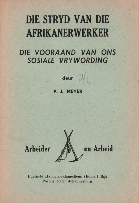 Meyer (P.J.) DIE STRYD VAN DIE AFRIKANERWERKER: die vooraand van ons sosiale vrywording. Stellenbosch, 1944