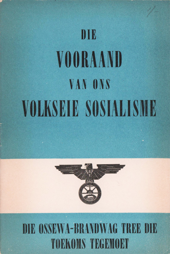 DIE VOORAAND VAN ONS VOLSEIE SOSIALISME: Die ossewa- Brandwag tree die toekoms tegemoet. Johannesburg, 1943