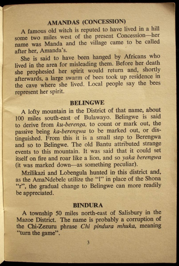 2.) Lore and Legend of Southern Rhodesia Place Names.