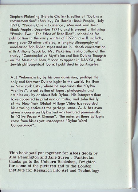Scarce first edition of all 11 epitaphs, assembled by Jim Pennington & Jane Suren. 48 pp with line illustrations. Covers somewhat ageworn, spine sunned and delamintaing slightly, otherwise in good clean condition