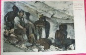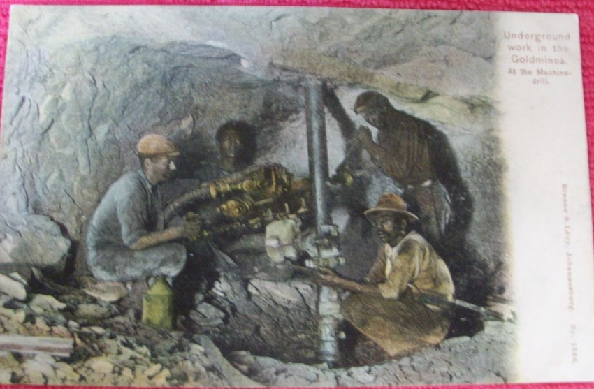 Underground work in the Goldmines. At the Machine-drill. Coloured.