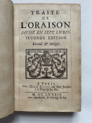 Pierre NICOLE Traité de l'Oraison divisé en sept livres. Seconde édition revue et corrigée. Paris, Hélie Josset, 1684. 1 vol. in-8. 23pp, [9]pp, 525pp, [3]pp. Full crushed crimson leather, title on spine, tooled leather doublures. Fine condition