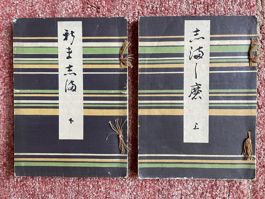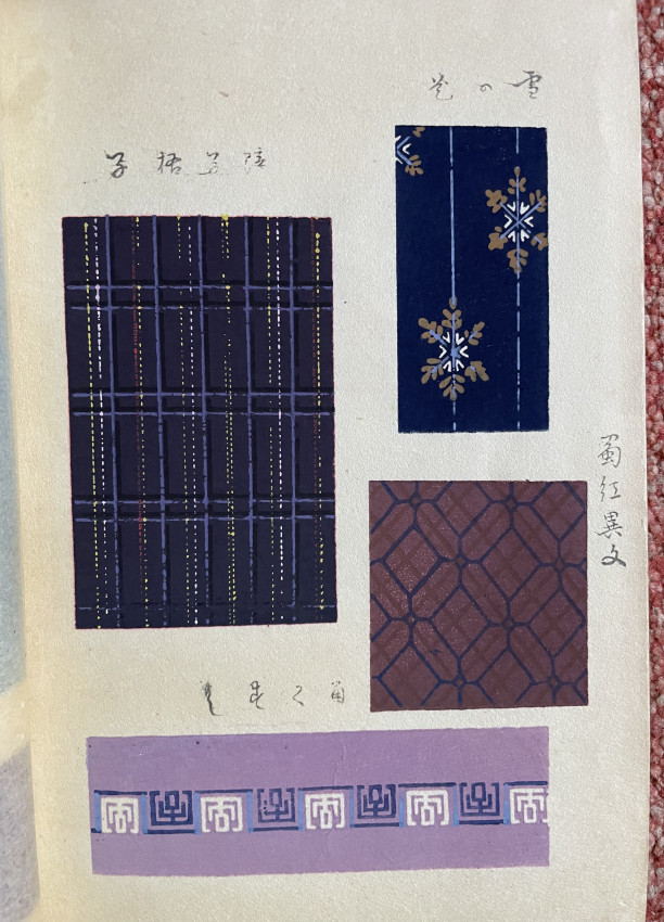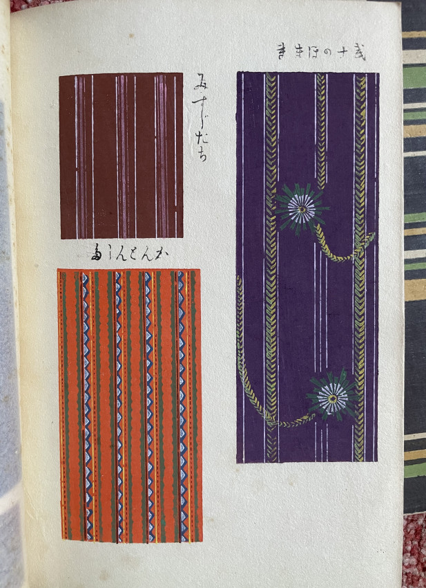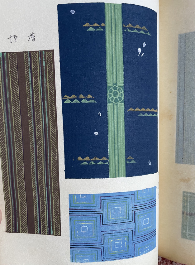 2 volumes bound Japanese style, 240 plus designs on 80 pages interleaved with tissue paper, woodblocks printed in colors, by Furuya KORIN, Yamada Naosaburo (Printer), no date but early twentieth century.