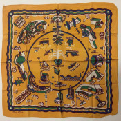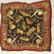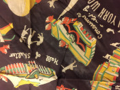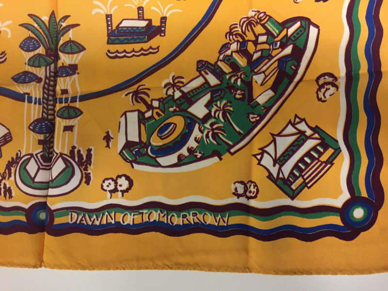 1939 Colorful Decorative silk scarf signed in the print, Tony Sarg. “NY World’s Fair Dawn Of Tomorrow. “