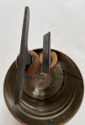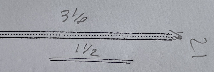 2 pallets, 2 lines with pointillé line in between, double thin lines, length 3 1/8” and 1.5”