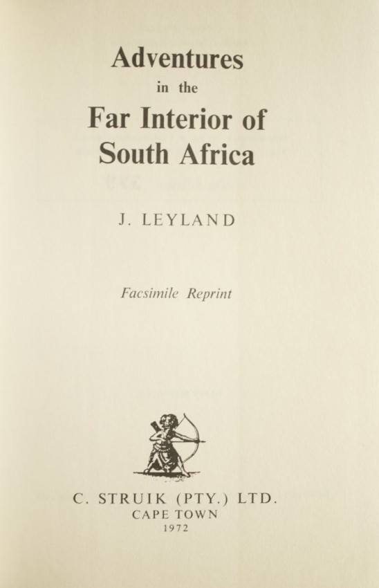 1) Adventures in the Far Interior of South Africa by J. Leyland.