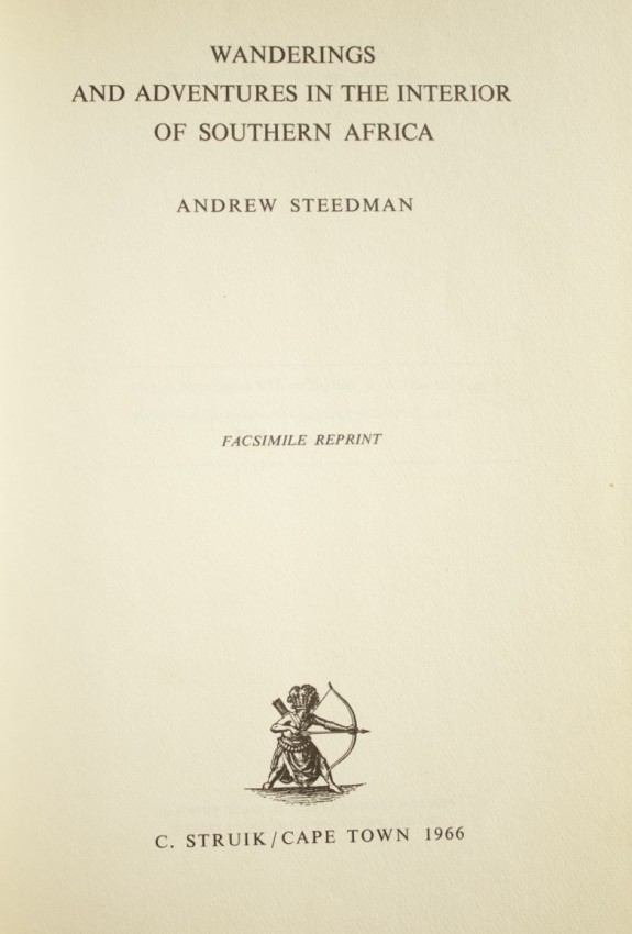 2) Wanderings and Adventures in the Interior of Southern Africa by Andrew Steedman.