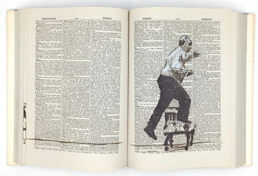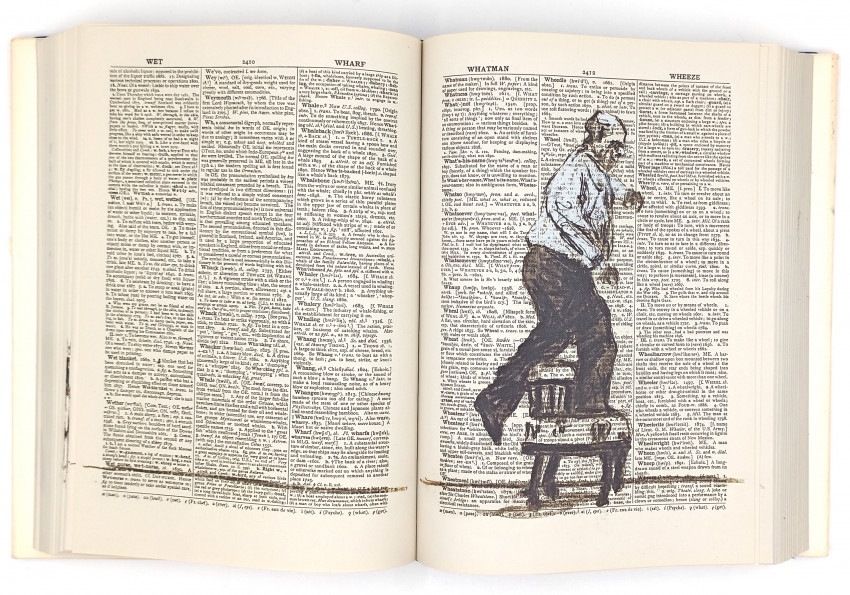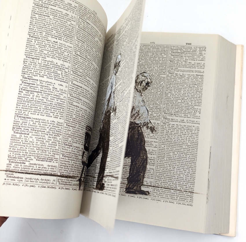 (https://fourthwallbooks.com/product/2nd-hand-reading/) '2nd Hand Reading began life as a film constructed from a succession of drawings made in 2013 on the pages of old books—a second-hand reading in which books are translated into a filming of books. It is both a narrative—it begins at the beginning and will eventually get to the end—and an acknowledgement of the necessity of repetition, inconsistency and the illogical. Kentridge has made many flip books, but this is his most ambitious, and attests to a long interest not only in film but in the relationship between drawing, photography and film-making.