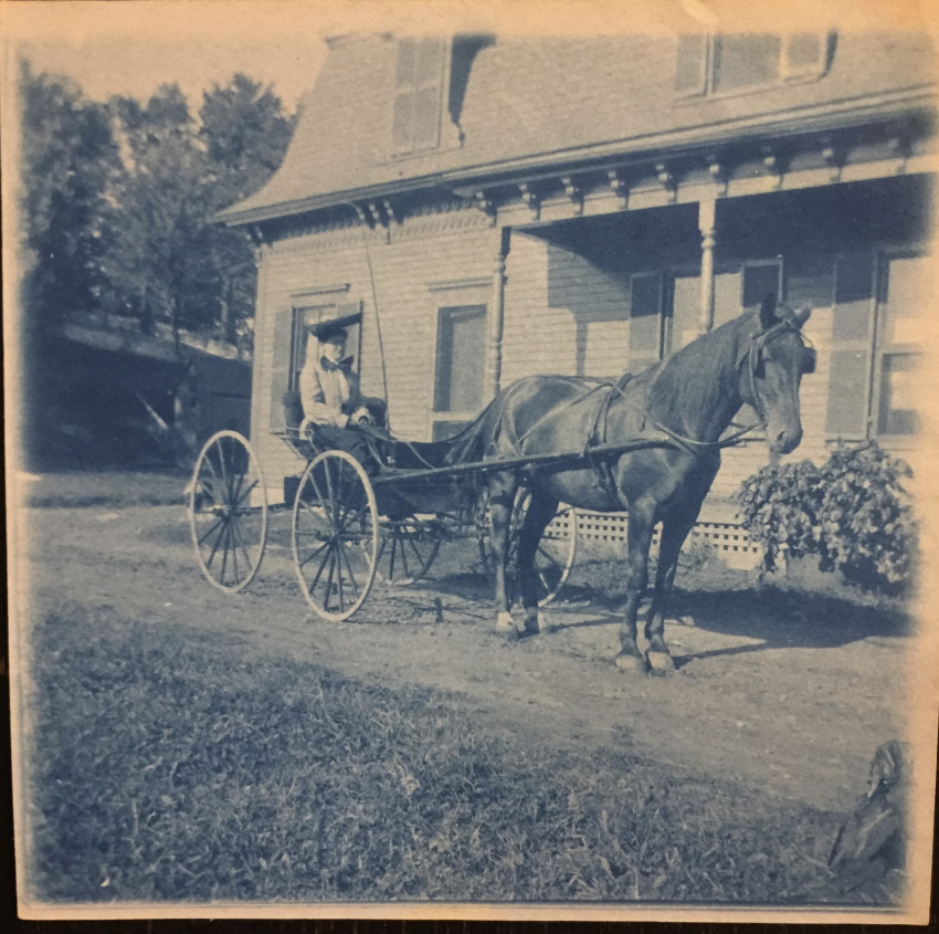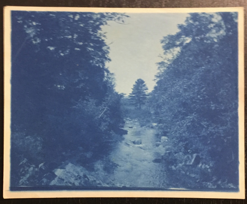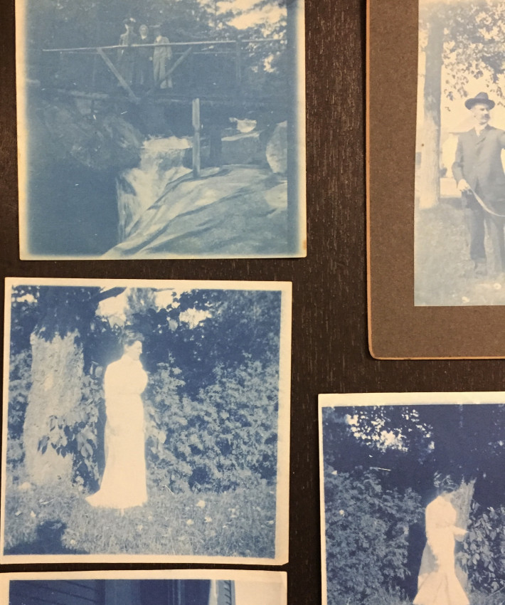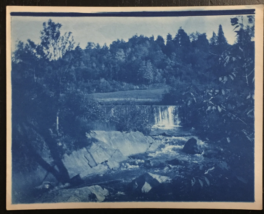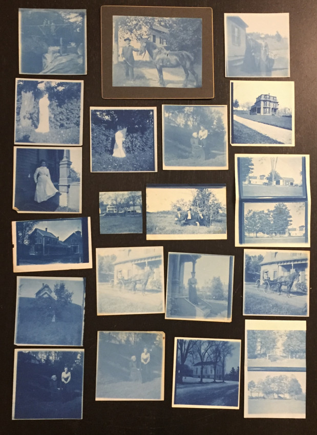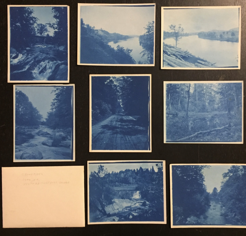 The largest is mounted, 6" x 5" edge to edge. 2 sheets have been uncut (4 images, folded.) Date unknown, c. turn of the century? Unusual views of the Connecticut River and other scenes in the border region of rural N.H. and VT.