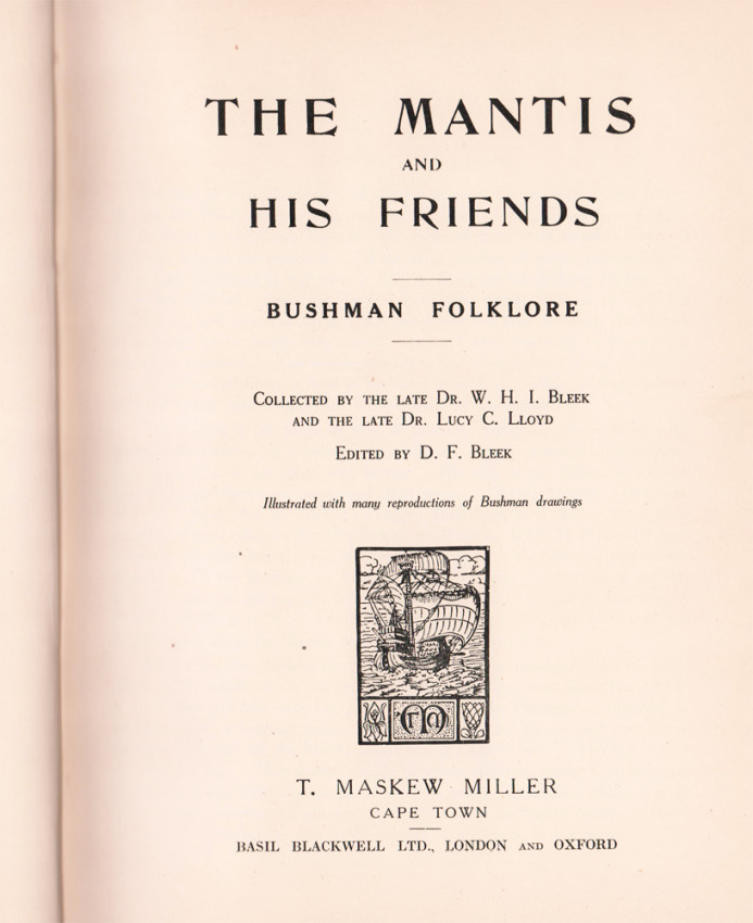 From the introduction by Dorothea Bleek:'The tales in this volume were all written down in the seventies by my father, the late Dr. Bleek, and my aunt, the late Dr. Lucy Lloyd. They were dictated by Bushmen in their own language, and many of them were translated at once with the help of the narrators. Of the great number of stories collected then, some were published by my aunt in 1910 in 'Specimens of Bushman Folklore', but many are still left. Since her death I have been preparing some of these for publication, and have chosen as a first instalment the tales in which the Mantis or members of his family play a part.'