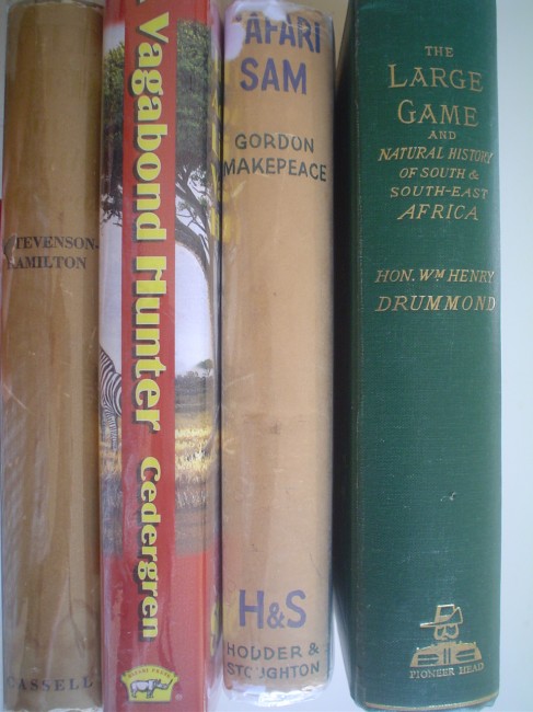 3. Safari Sam by Gordon Makepeace: "Makepeace", a journalist, recorded the experiences of "Safari Sam" during a long interview. Sam evidently spent much time in the Northern Rhodesian brush country and relates incidents of encounters with rhinoceros, lion, leopard and crocodile, as well as conversation with a veteran elephant hunter. The frontispiece and plates reveal a bright-eyed Sam in various poses." 1933 first edition in good condition. Dust jacket has wear to edges.