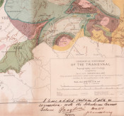 480 x 630 mm, coloured and printed in relief, mounted on linen, folds into decorated cream cloth covers, the owner’s name is written in ink on the cover and on the map, the back cover is marked, the map is a very good copy.