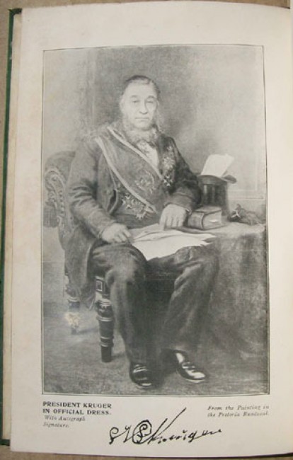 6)McKenzie, Fred A.(spelt \'Mackenzie\' on front cover): \"Paul Kruger: His Life Story.\" Original green cloth boards with silver titling on the spine and the upper board, with a photographic image laid on. 120 pages, black and white illustrations, 16 black and white illustrations including the one on the cover, followed by eight pages of the publisher\'s advertisements. The binding of this book is intact, but grubby.