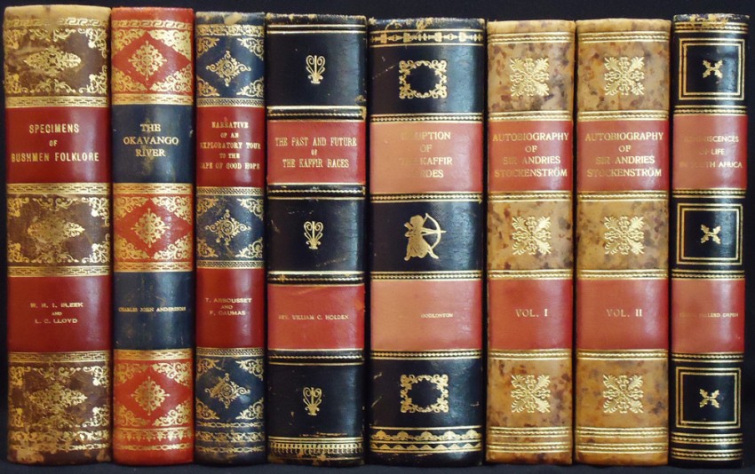 These bindings were made for Cornelius Struik, the founder of C. Struik, Africana Specialist & Publisher, at a monastery in Mozambique. There is some rubbing of the leather but generally they are in very good condition.