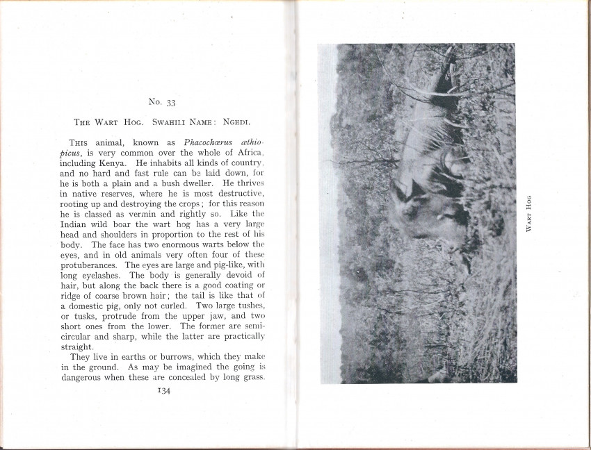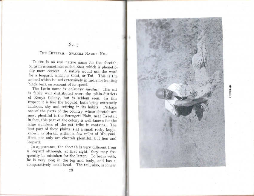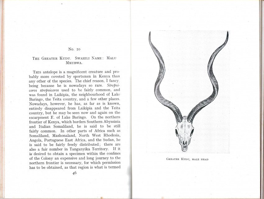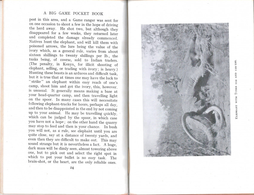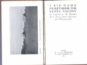 Guide to types of game and regions to be hunted for newcomers arriving in the colony and mention of equipment and firearms needed for the hunt" (Czech). 34 chapters on each of the big game species, plus hints on the treatment of skins and trophies in the field.