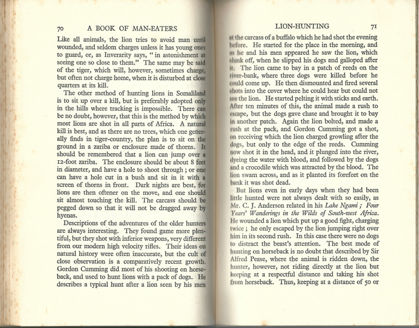 Combining his own hunting adventures with a study of the tiger, lion, leopard and bear in general, Burton focuses on man-eaters, hunting from an elephant. hunting on foot and other equally descriptive chapters. A now uncommon title.