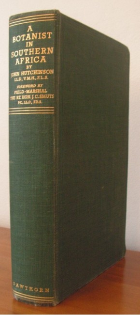 (London: P. R. Gawthorn Ltd, 1946) Royal 8vo; original green cloth, lettered in gilt on spine; pp. xii + 686; profusely illustrated with plates, maps and charts, incl. folding, line drawings and photographs in text. Cloth a little rubbed; bump to bottom fore-corner of upper board; earlier owner\'s name signed on pastedowns; upper hinge starting; trace of spotting to fore-edge; binding a little slack. Good. A classic of Southern African botany, which contains descriptions of Hutchinson\'s travels between 1928-29 and 1930. \"In 1919 he was put in charge of the Africa section and in 1936 was promoted to keeper of the Kew botanical museums. He retired in 1948 but continued to assist in the herbarium until his death, publishing even more works during this period than before his retirement.\" - DSAB V, p. 370.