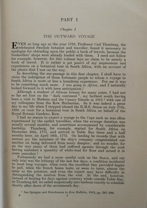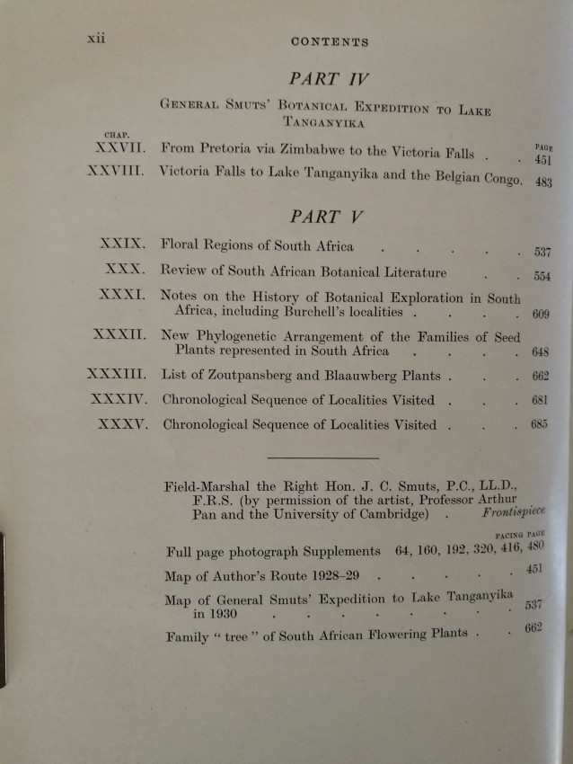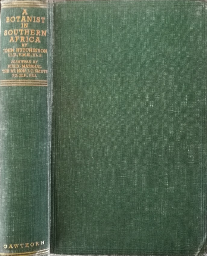 The dedication is to I B Pole-Evans, director of the Botanical Survey of the Union of South Africa "in grateful acknowledgment of much help during my travels". The 4 pp foreword is one of Smuts's longest, most botanically inspired, and most generous - all because of his close friendship with Hutchinson and his works.
