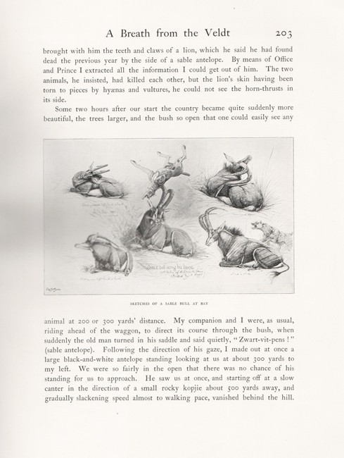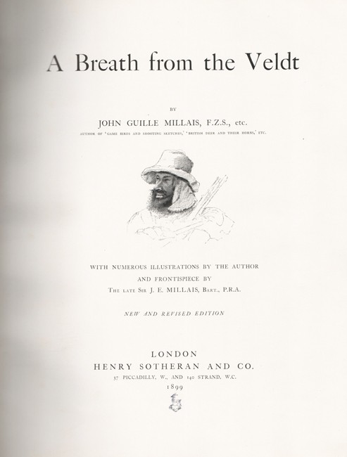 Czech (Dr. K.) An Annotated Bibliography of African Big Game Hunting Books 1785 – 1999 (2011), page 196. 'Highlighted by the author's detailed illustrations, this work represents Millais' journey towards the Limpopo River with excursions to hunt Kudu, reedbock, waterbuck, sable and roan. Near the Nuanetsi River, he bagged buffalo and zebra. After leaving the Limpopo, he collected trophy kudu, as well as lion and leopard. A most readable and visually exciting book of African travel and big game hunting.'