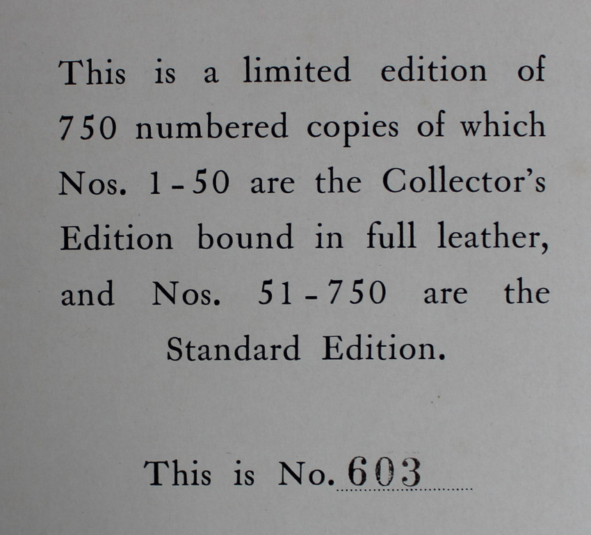 Copy number 603 of a facsimile edition limited to 750 copies.