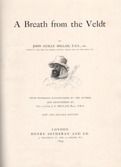Czech: An annotated Bibliography of African Big Game hunting Books, 1785 to 1950, page 114/115, ‘Highlighted by the author’s detailed illustrations, this work represents Millais’ journey toward the Limpopo River with excursions to hunt kudu, reedbuck, waterbuck, sable, and roan. Near the Nuanetsi River, he bagged buffalo and zebra. After leaving the Limpopo, he collected trophy kudu, as well as lion and leopard. A most readable and visually exciting book of African travel and big-game hunting.’