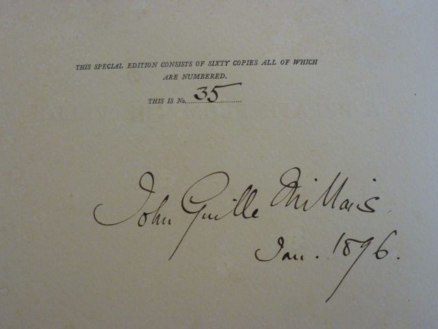 Illustrations are by the author with the exception of a full page electro etched frontispiece on India paper by the author’s father Sir John E Millais. There are 12 Full Page electro etches on India Paper, as well as 12 Full page plates also on India Paper. Within the text there are 125 illustration of different sizes all on India Paper. The text is printed on Hand-made wove paper. All Illustrations are of South African Fauna and Flora and camp life.