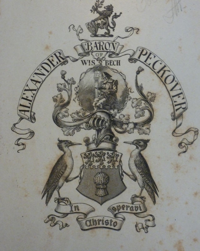 Ex Libris plate on paste down. From the Library of Alexander Peckover Baron of Wisbech.