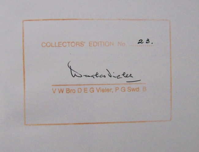 Copy number 23 of the Collectors\' edition. Signed by Douglas Vieler, who completed the book after the death of Dr A.A. Cooper.
