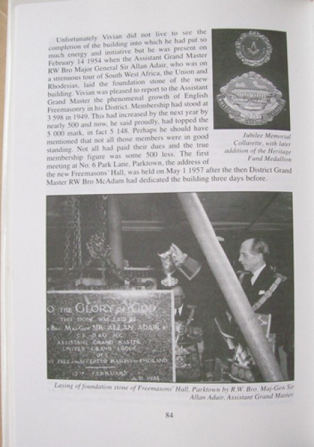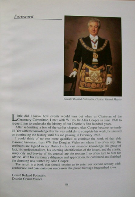 The sub-title is: \"Centenary history of the District Grand Lodge of Ancient Free and Accepted Masons of England.\"