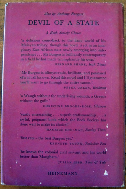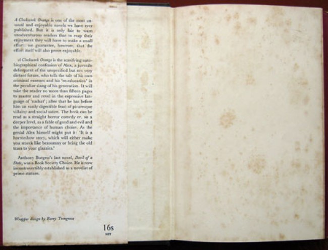 196p. Black cloth boards with gilt lettering to spine. Dust jacket has price of 16s net. Dust jacket and book are both heavily foxed. Head of spine has very slight wear and there is a closed tear to upper edge of dust jacket. The T in author\'s name on spine has been worn and there are a few places to rear of dust jacket where paper has been worn away. Corners are slightly bumped. This is one of modern British literature\'s classic novels and highly sought after. \'The book can be read as a straight horror comedy or, on a deeper level, as a fable of good and evil and the importance of human choice.\' (dustjacket flap)