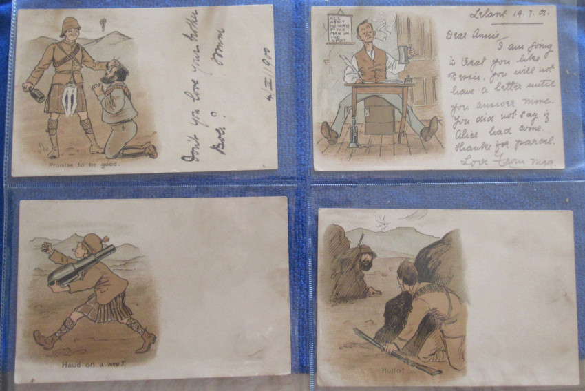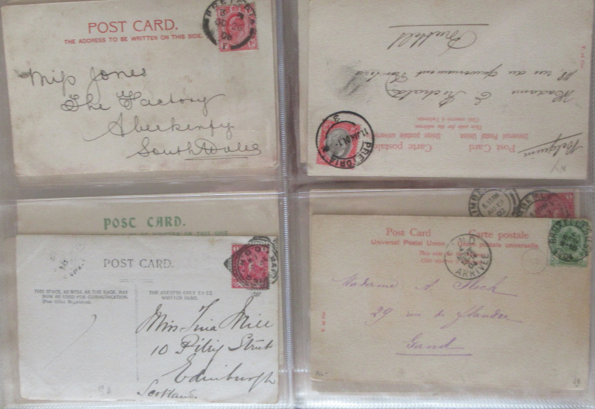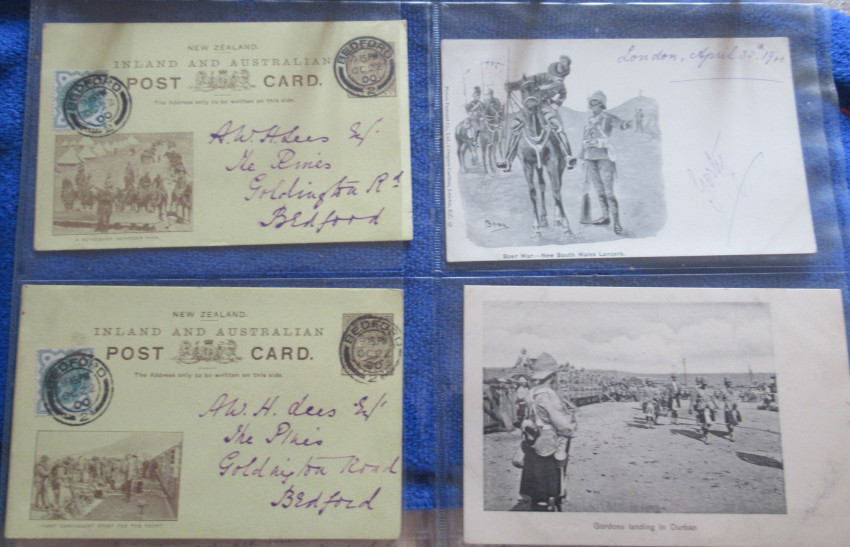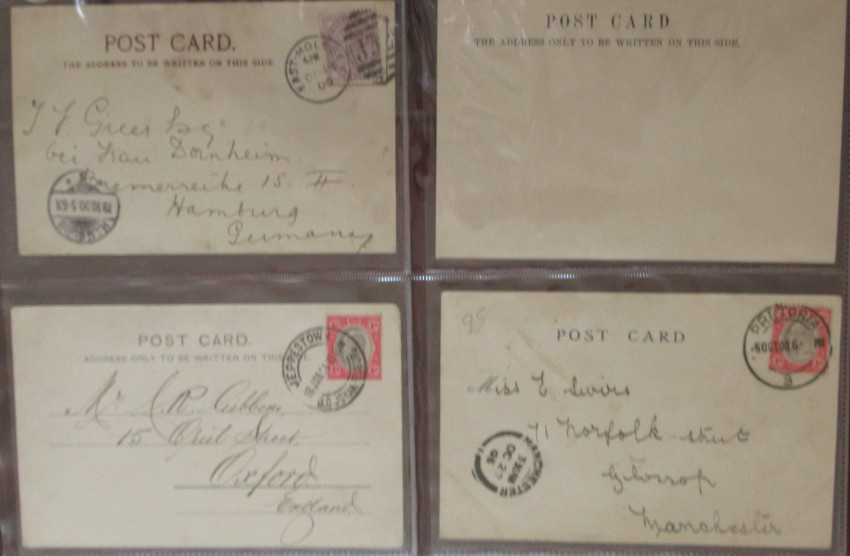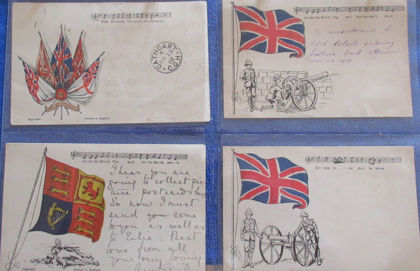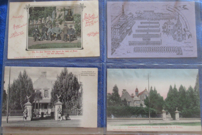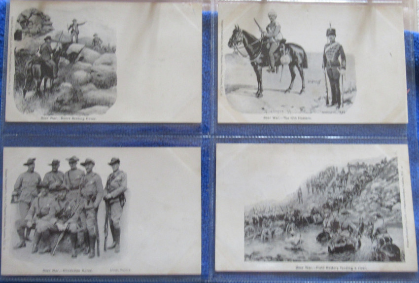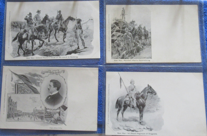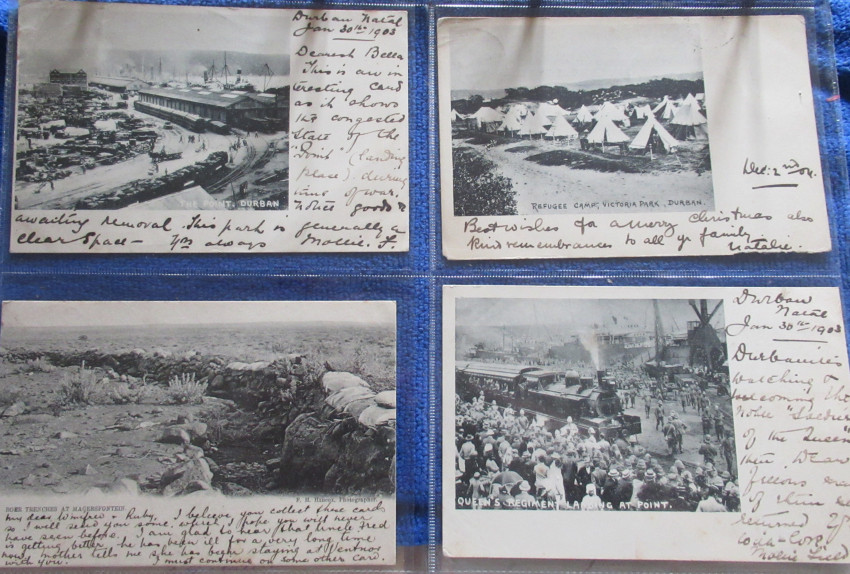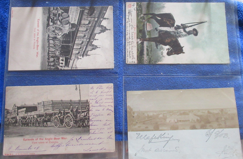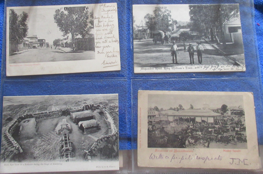 With inked messages and greetings, and from a large range of postcards, coloured and black and white examples. Includes examples from concentration camps, Ladysmith, Mafeking. Also includes examples of humourous cards, South African War Cards from a variety of manufacturers. Includes some foreign cards.